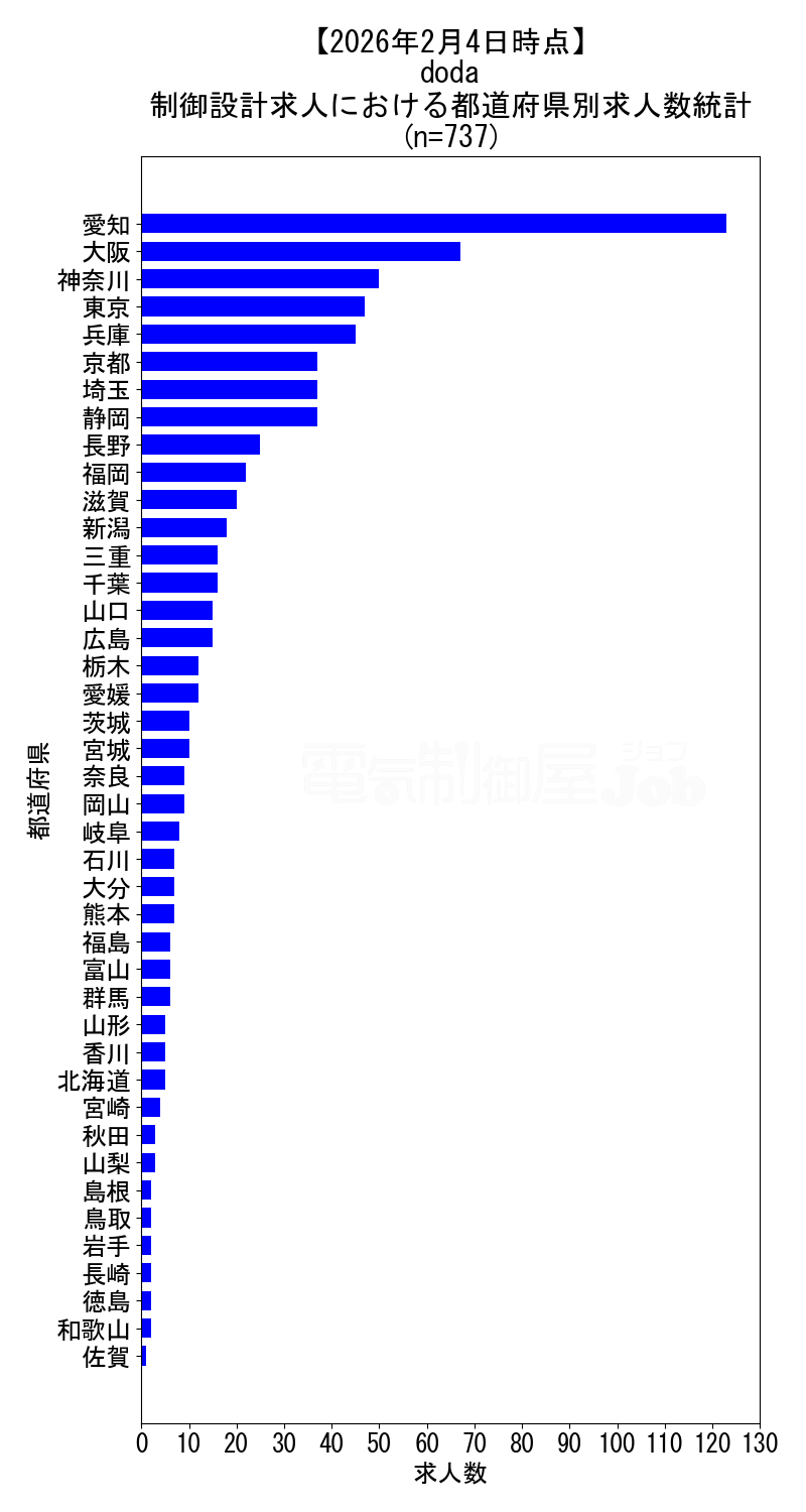 当サイトで定期的に調査しているdodaの2026年2月4日時点における制御設計求人集計データです。