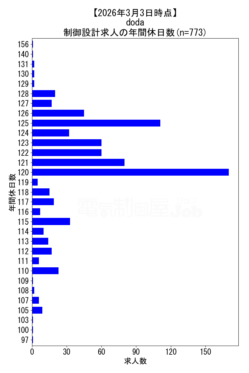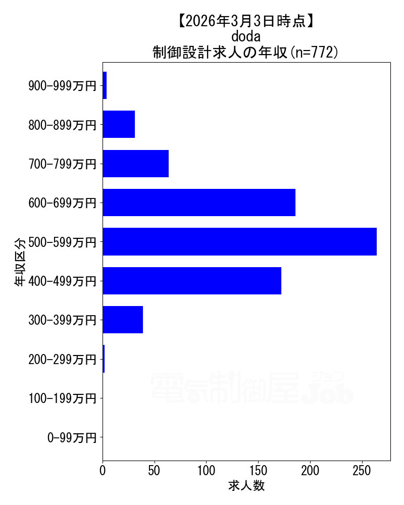 当サイトで定期的に調査しているdodaの2026年3月3日時点における制御設計求人集計データです。