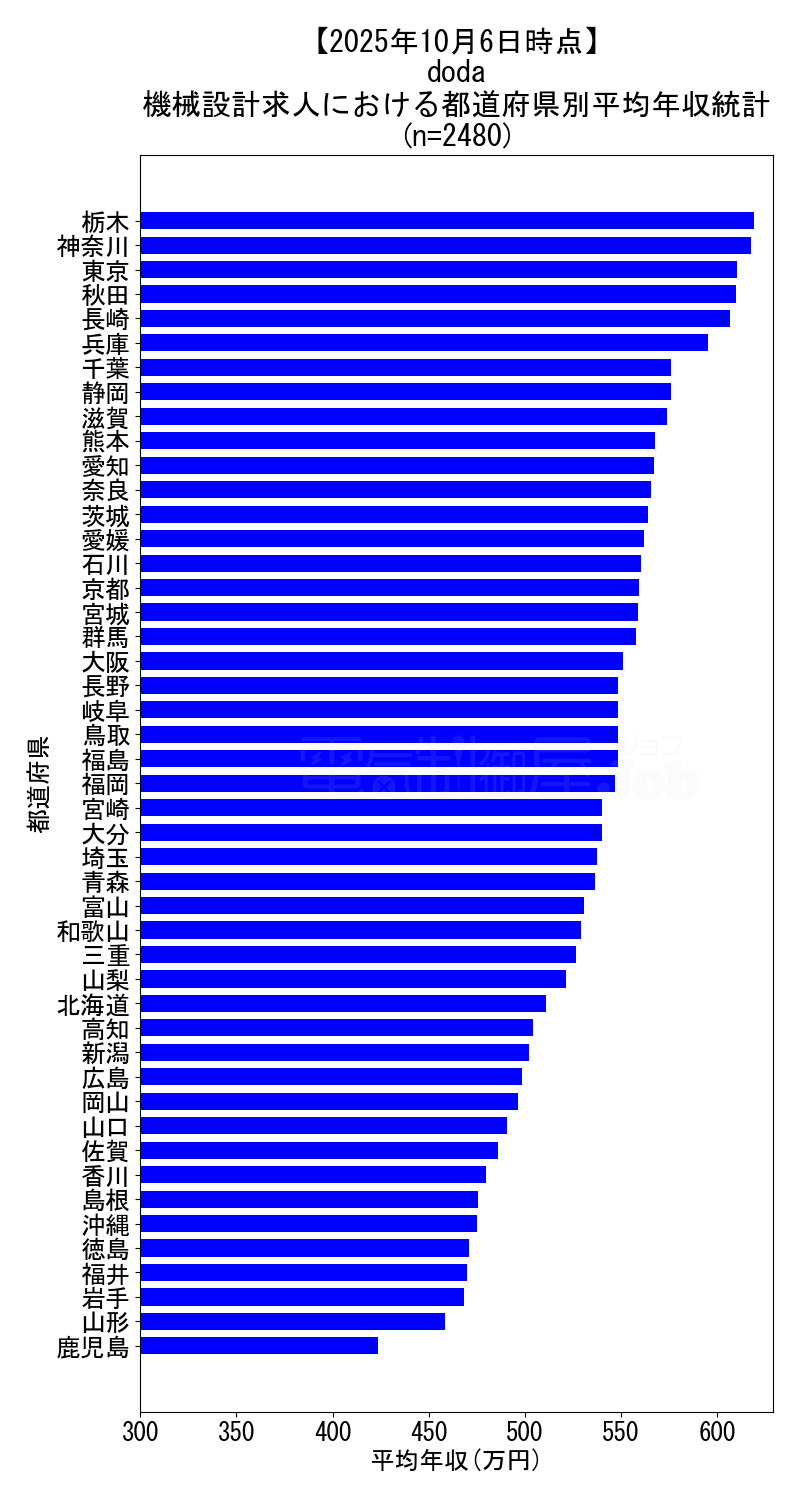 - 都道府県別求人の年収データ⇒2480件