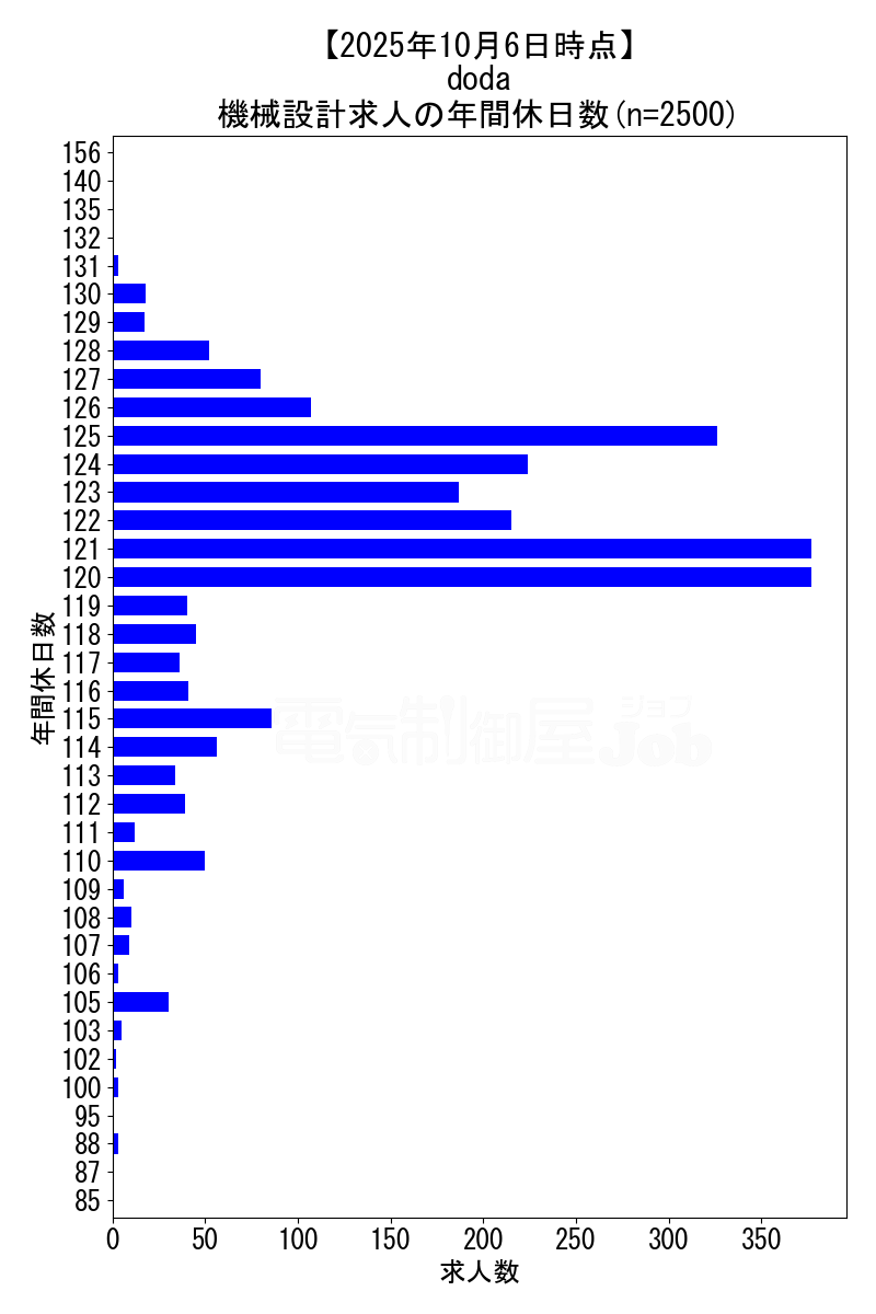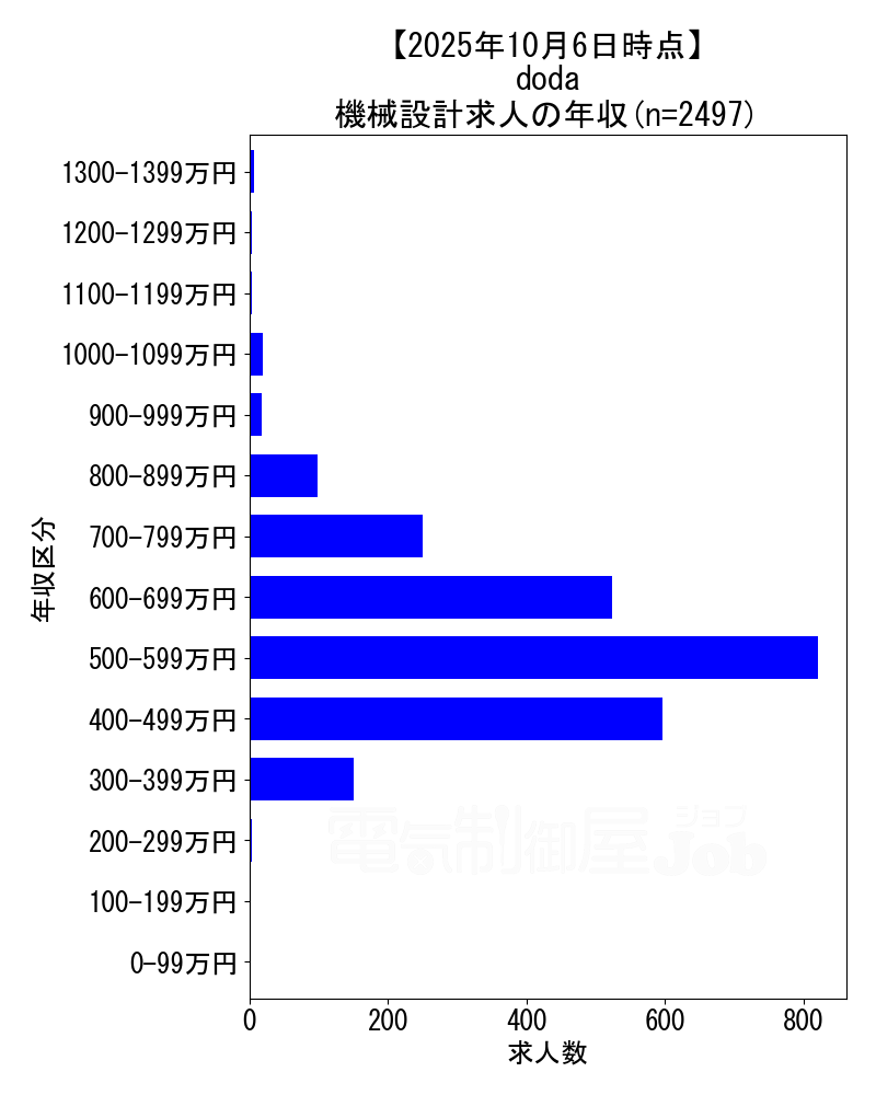 2025年10月6日時点 dodaの機械設計求人集計データ