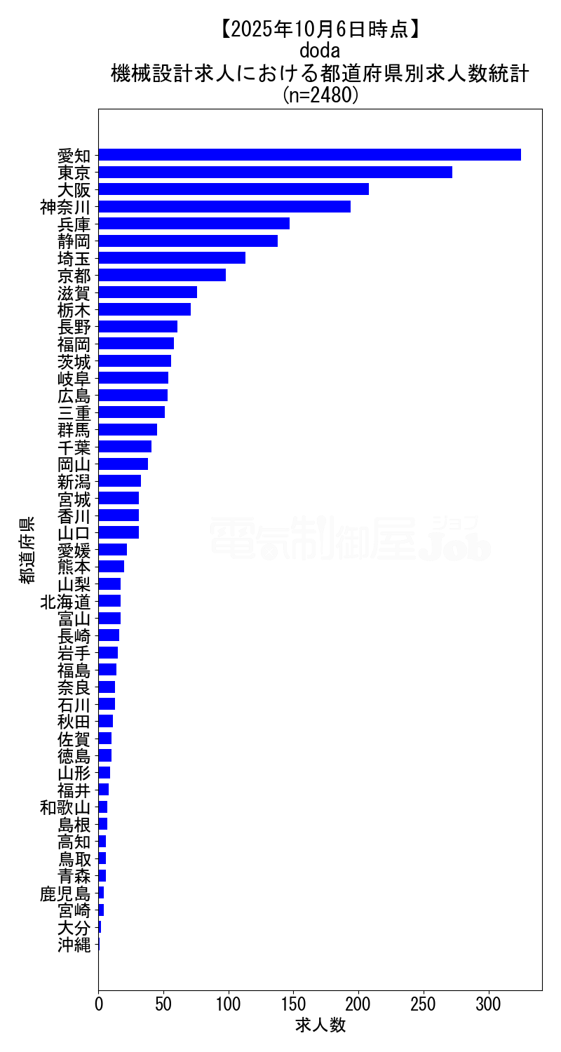 当サイトで定期的に調査しているdodaの2025年10月6日時点における機械設計求人集計データです。