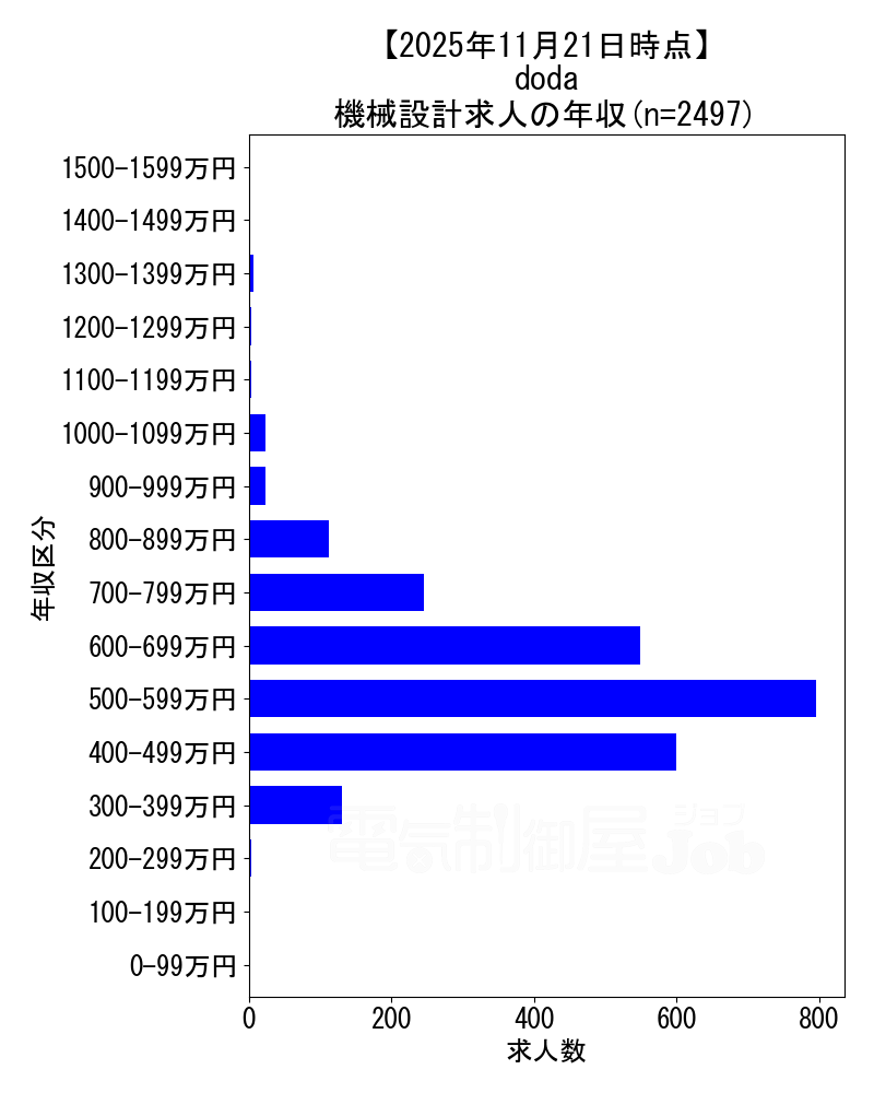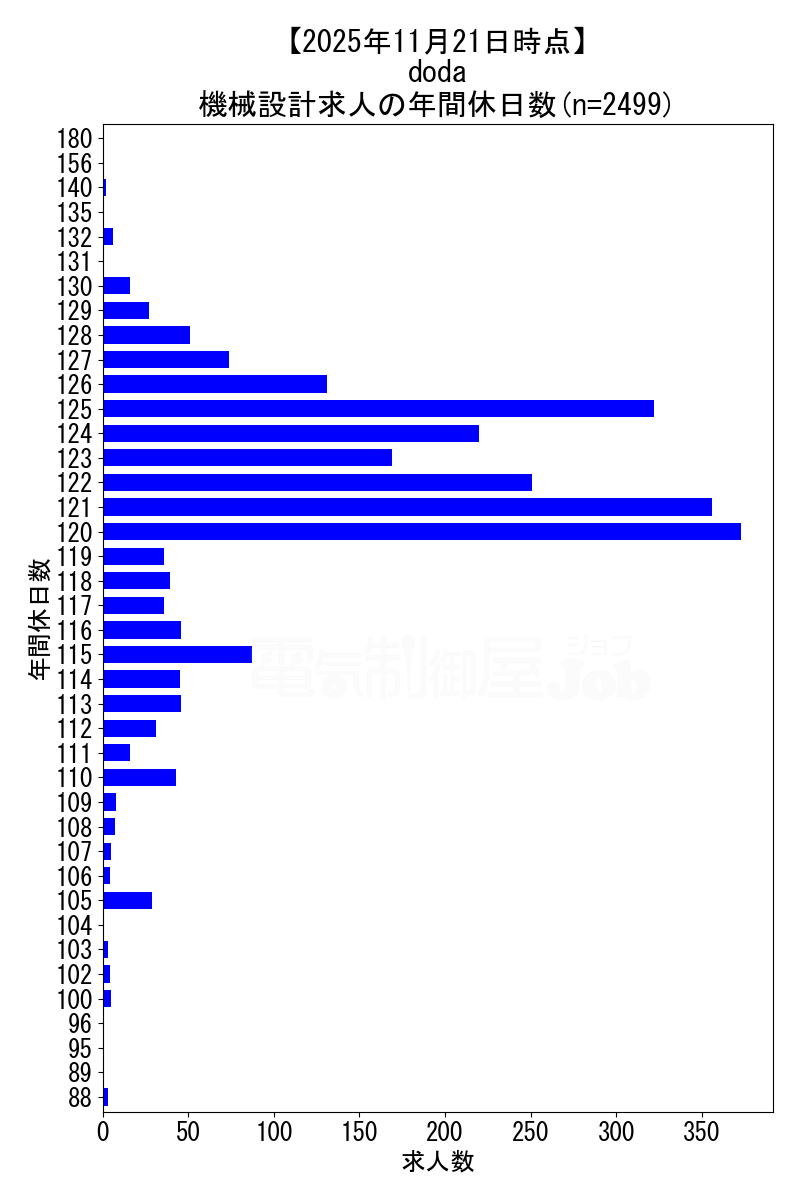 当サイトで定期的に調査しているdodaの2025年11月21日時点における機械設計求人集計データです。