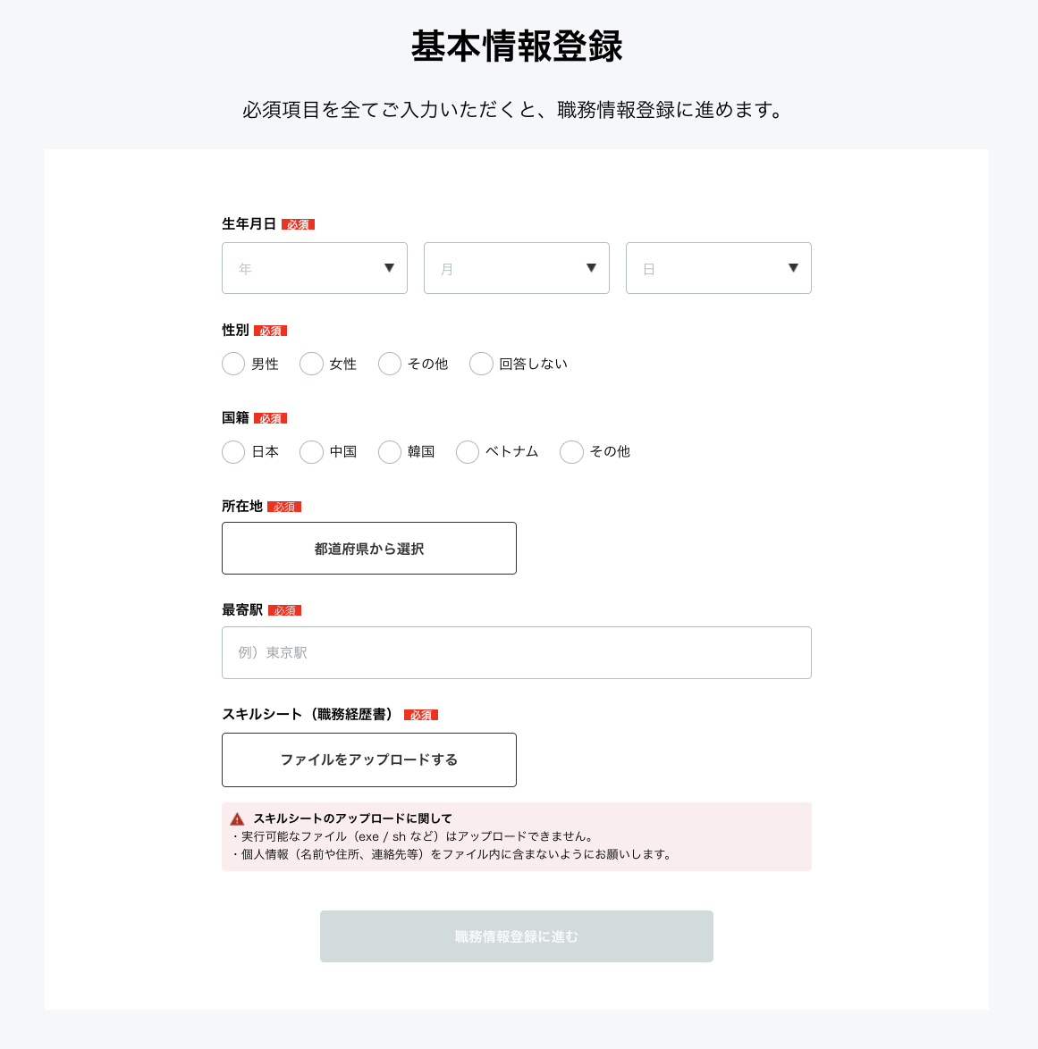スキルシートは「何ができるか」を記載します。登録段階で詳細に書く必要はなく、箇条書きでできることを10行程度記載してください。