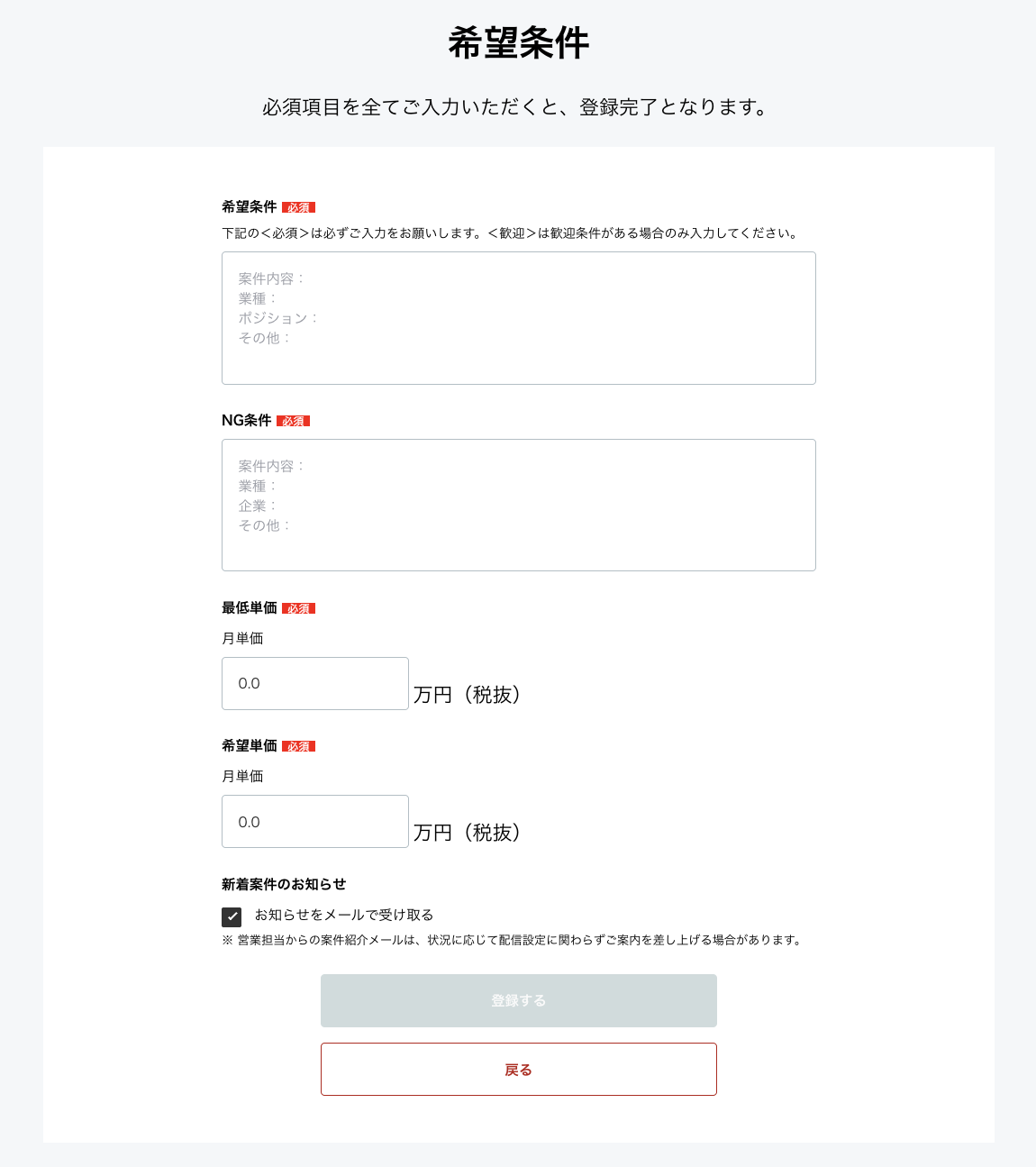 - 希望単価(月単価)
