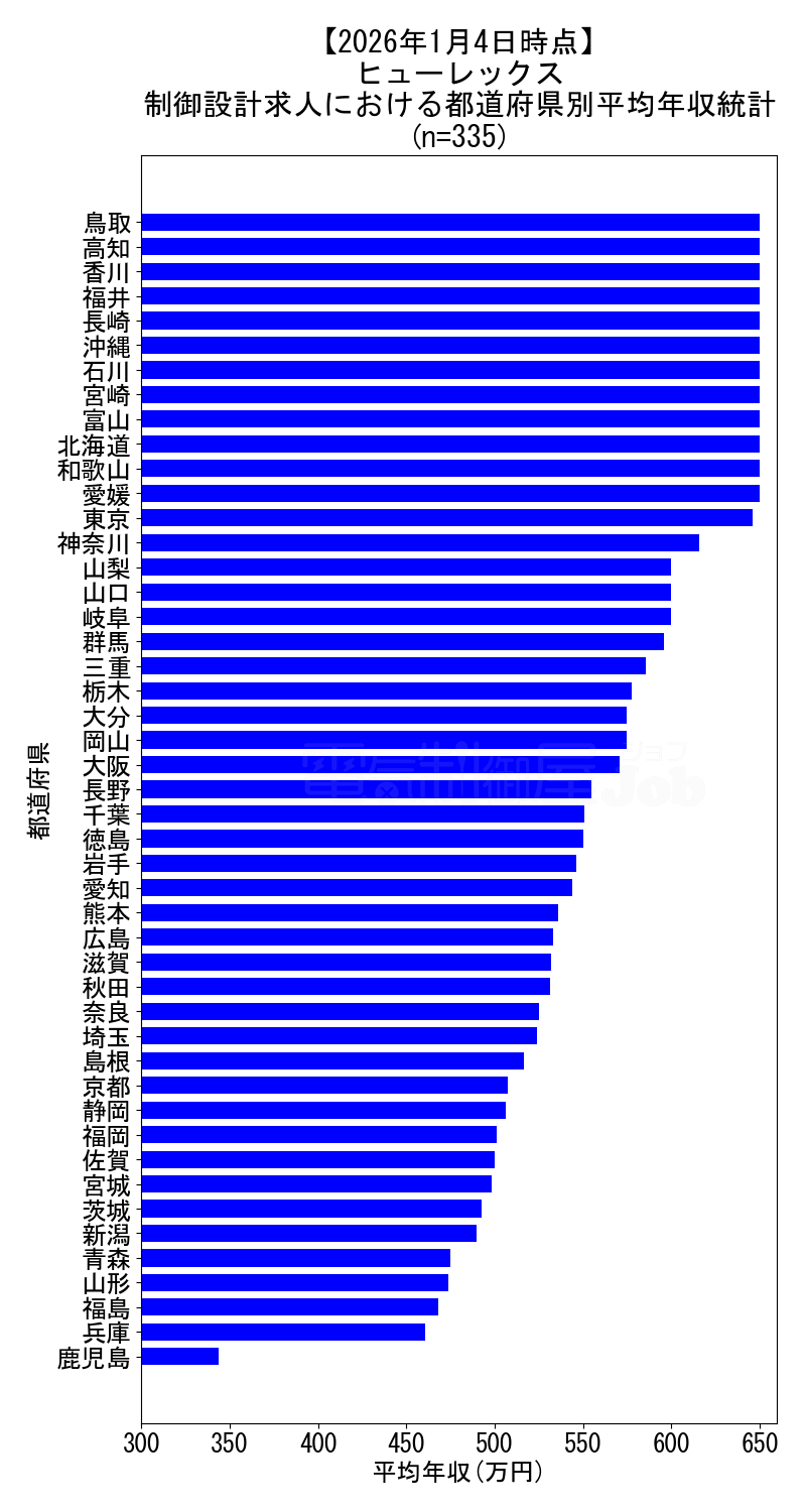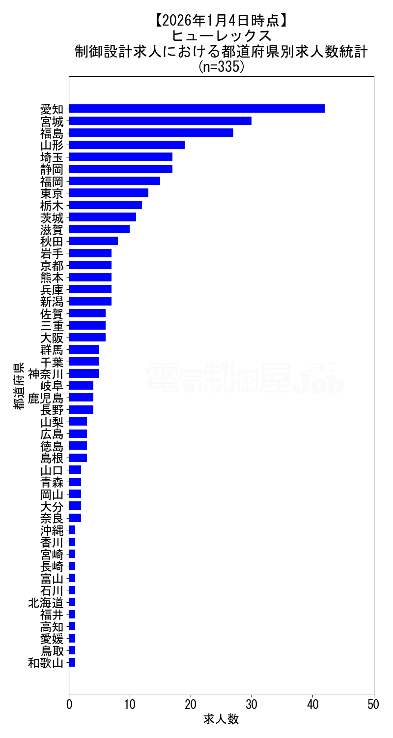 当サイトで定期的に調査しているヒューレックスの、2026年1月4日時点における制御設計求人集計データです。