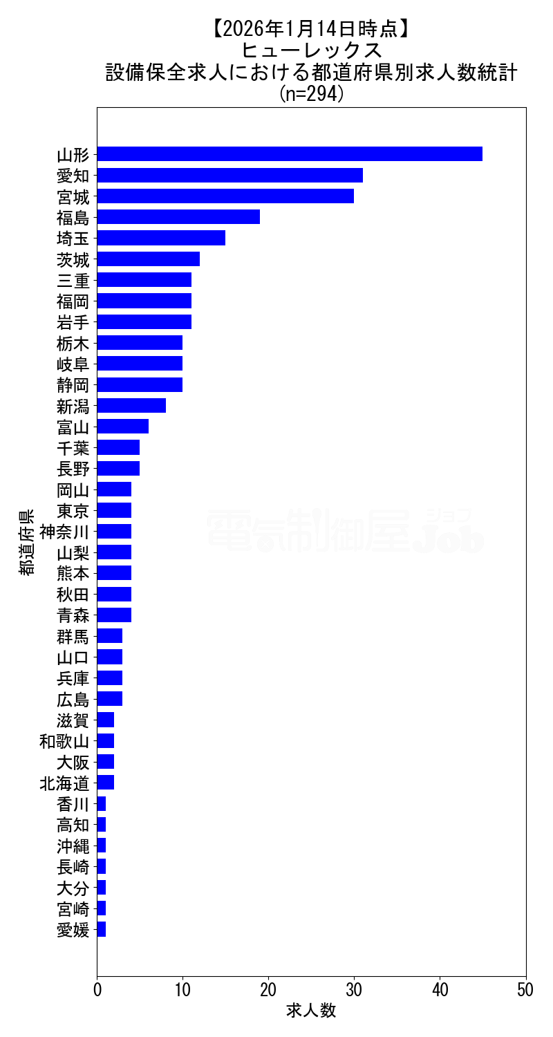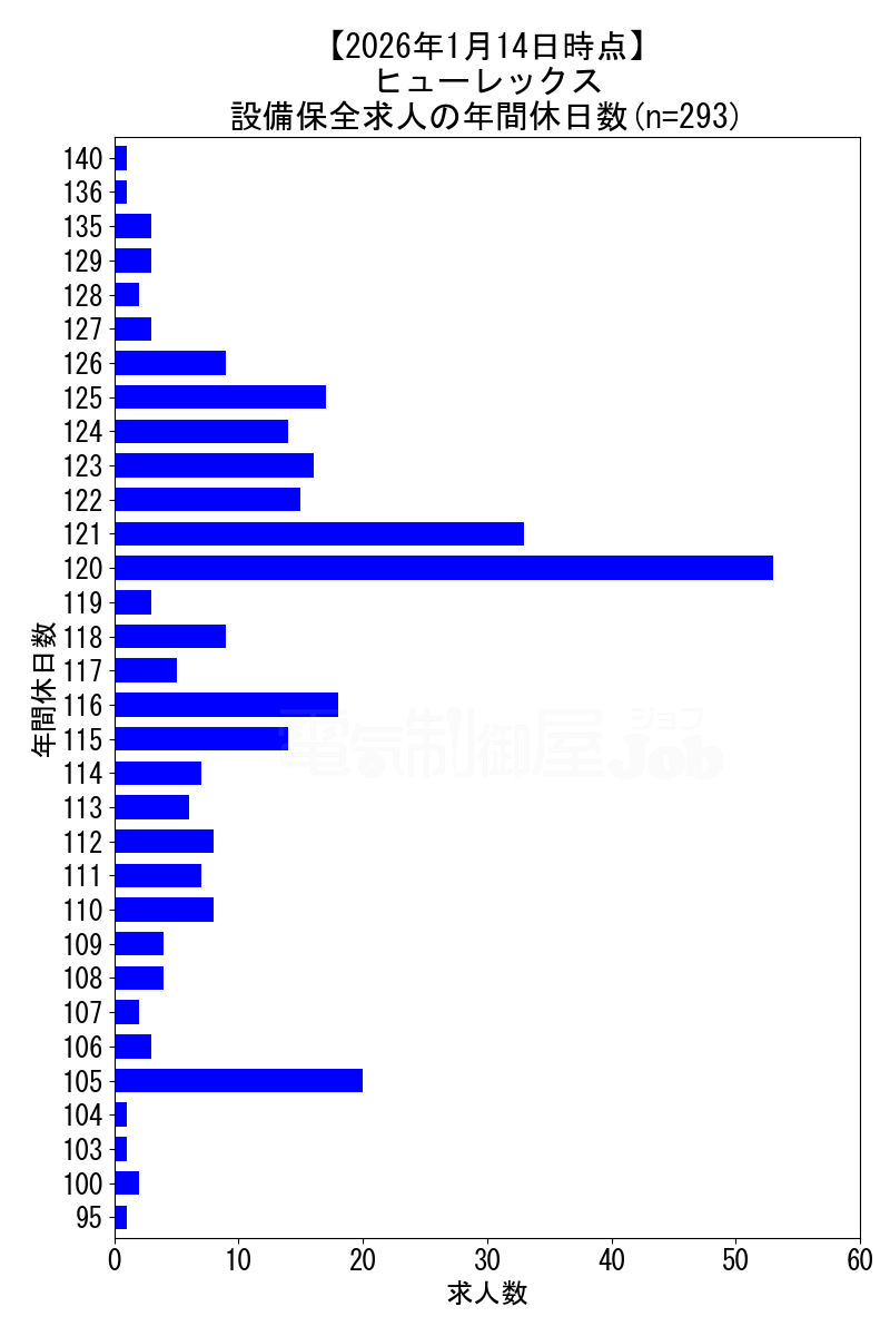 当サイトで定期的に調査しているヒューレックスの、2026年1月14日時点における設備保全求人集計データです。