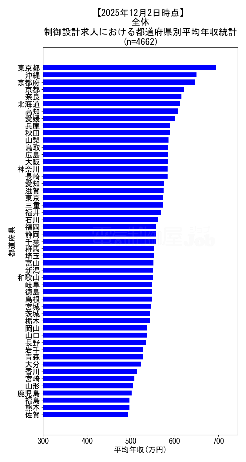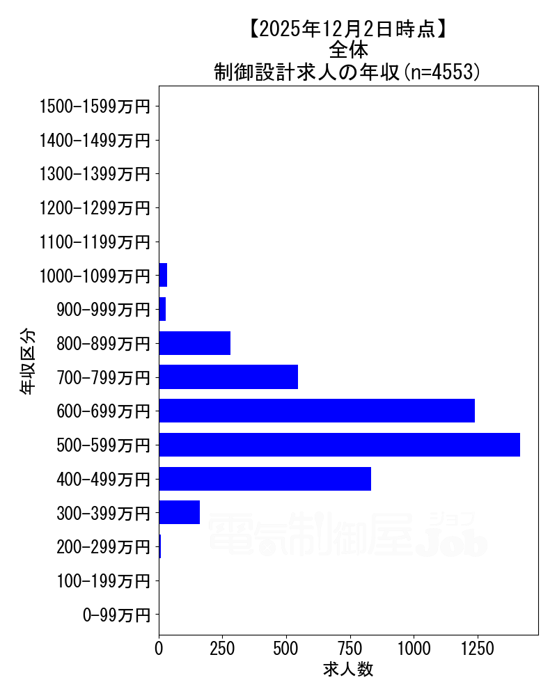 2025年12月2日時点 制御設計求人の年収分布データ