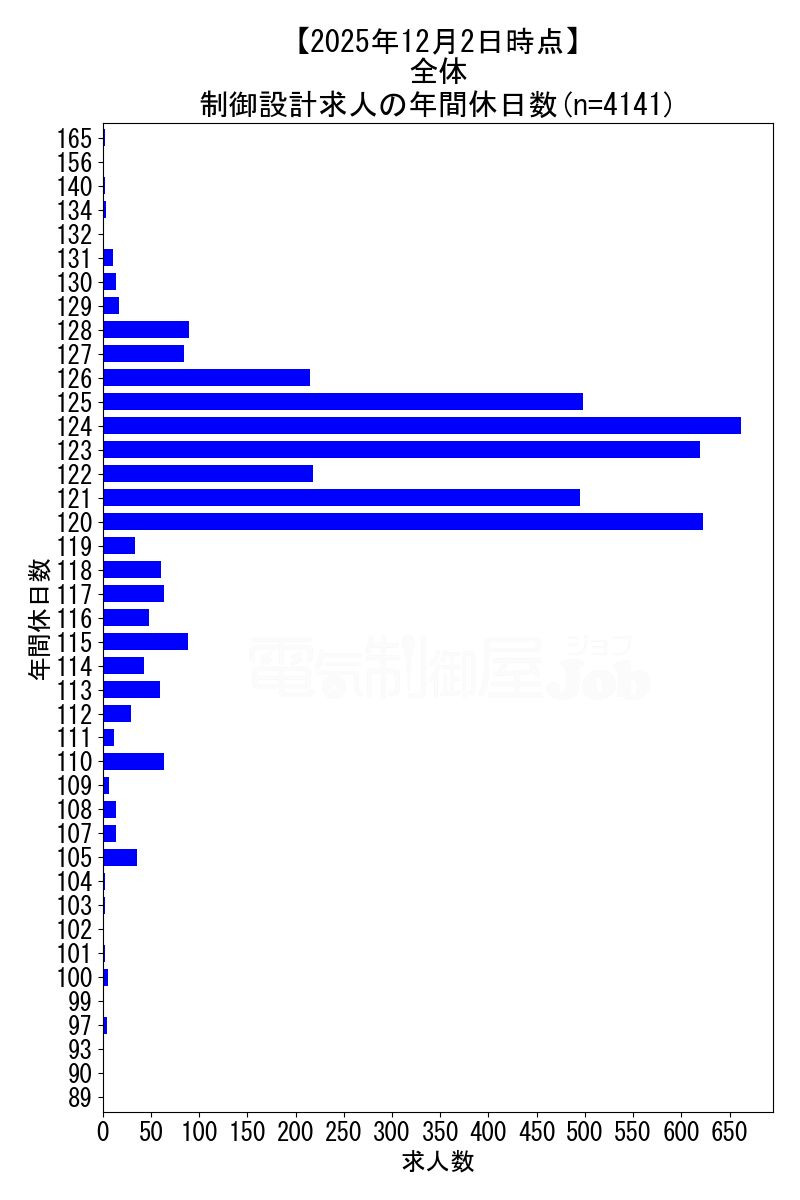求人全体の年間休日データ