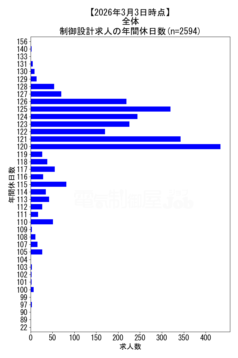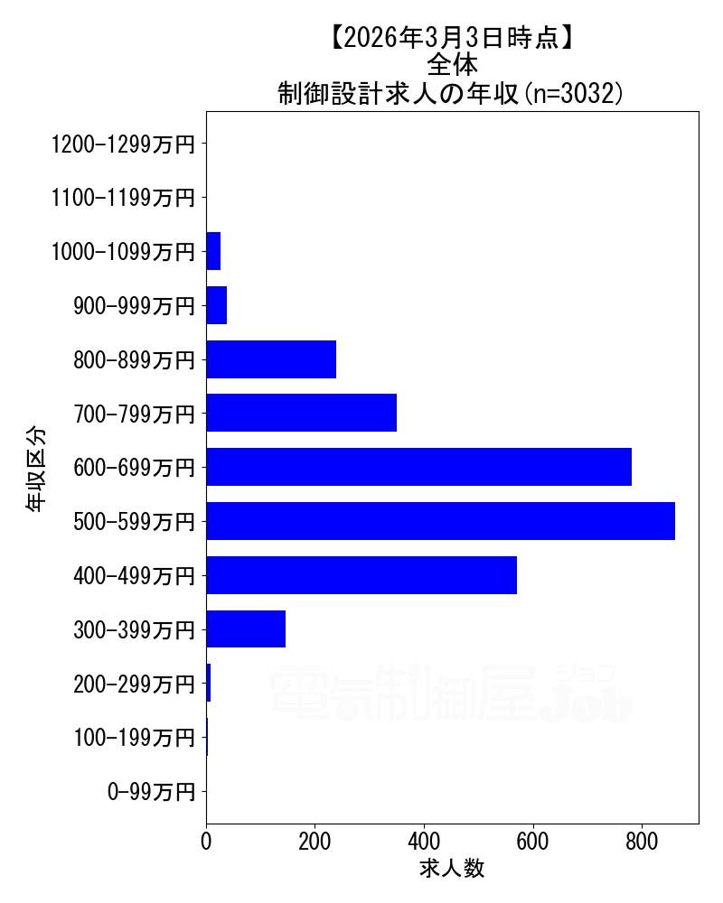 2026年3月3日時点 制御設計求人の年収分布データ