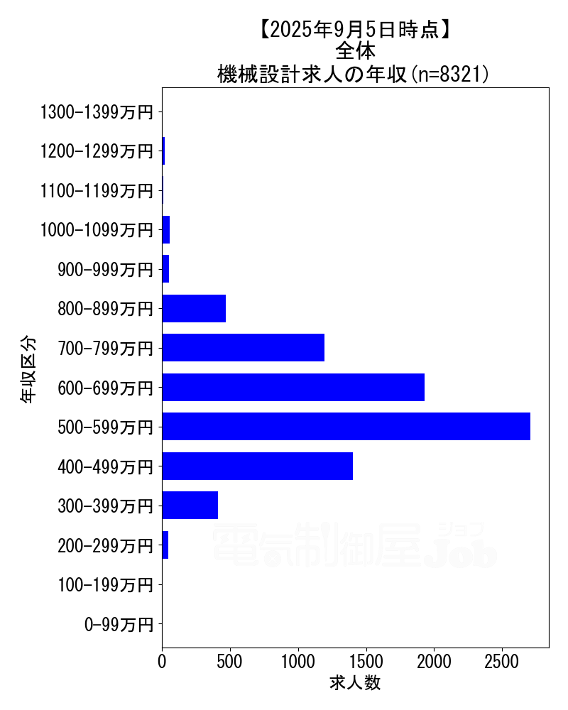 2025年9月5日時点 機械設計求人の年収分布データ