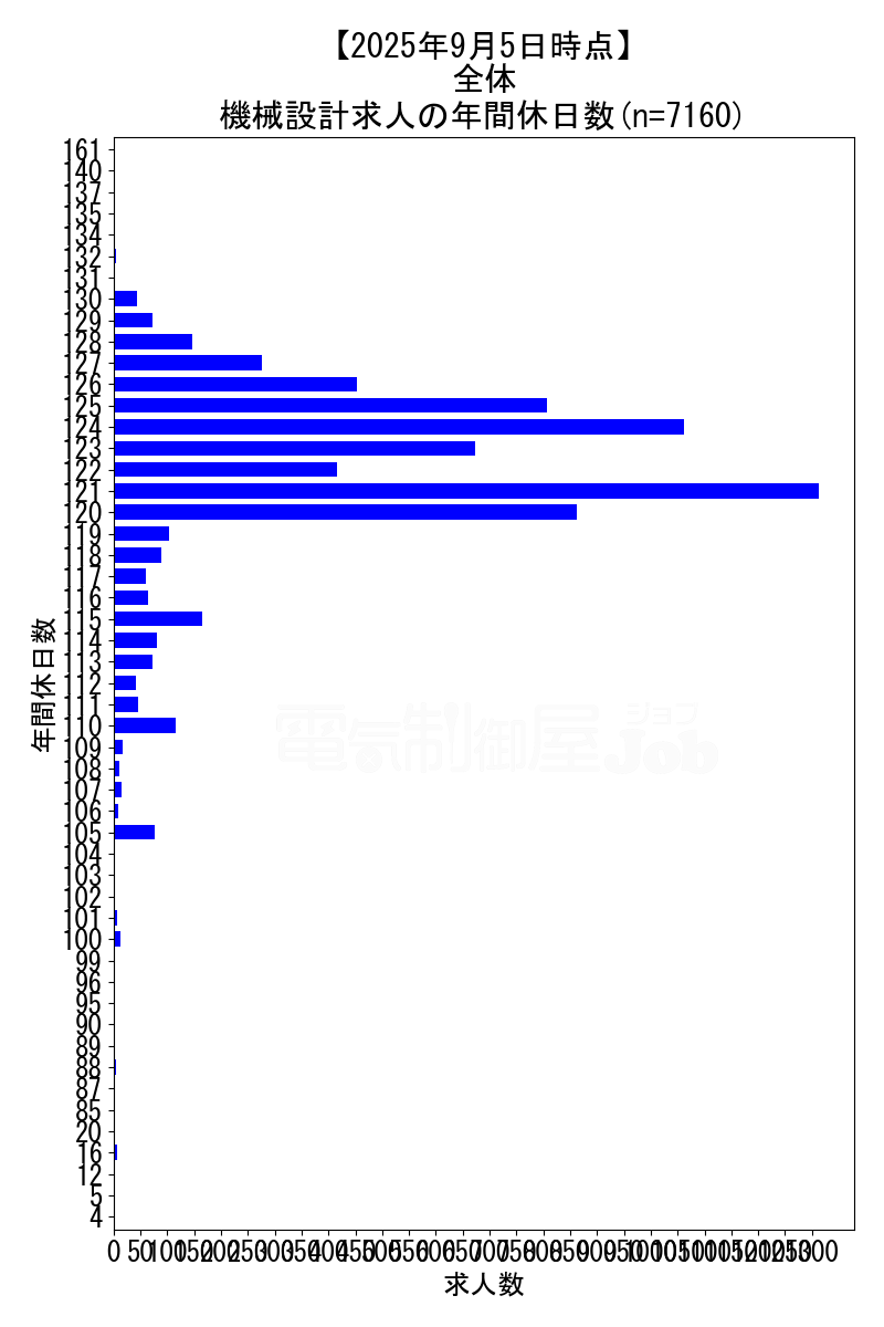 求人全体の年間休日データ