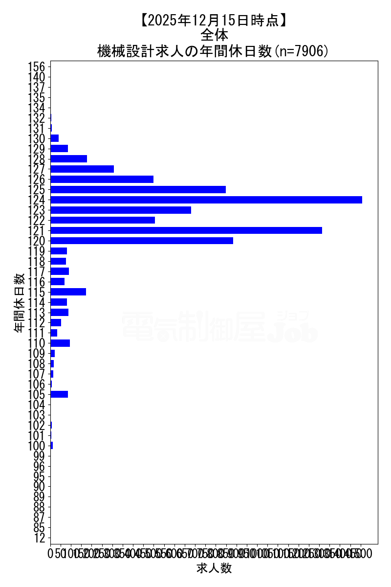 求人全体の年間休日データ