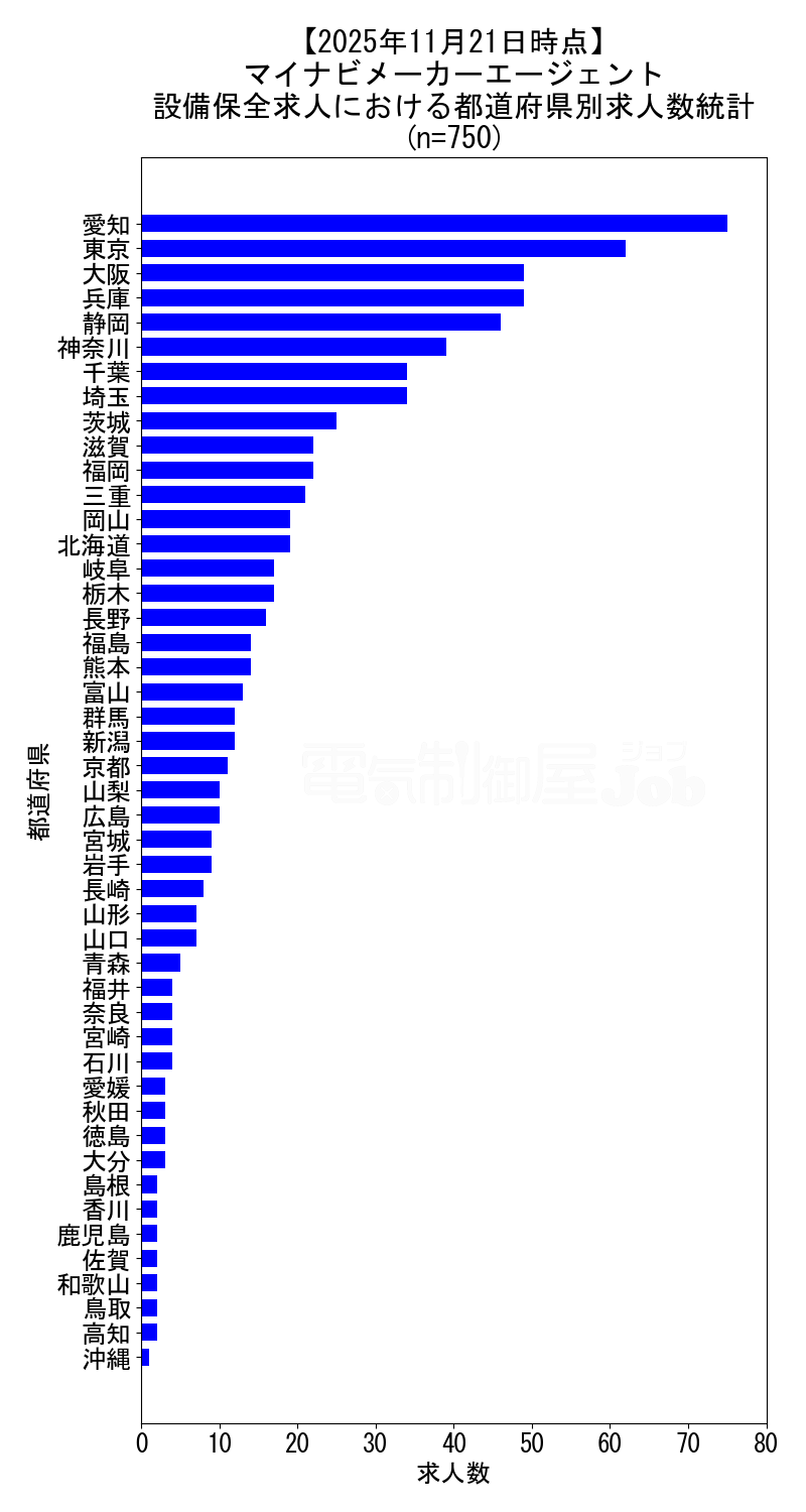 当サイトで定期的に調査しているマイナビメーカーエージェントの、2025年11月21日時点における設備保全求人集計データです。
