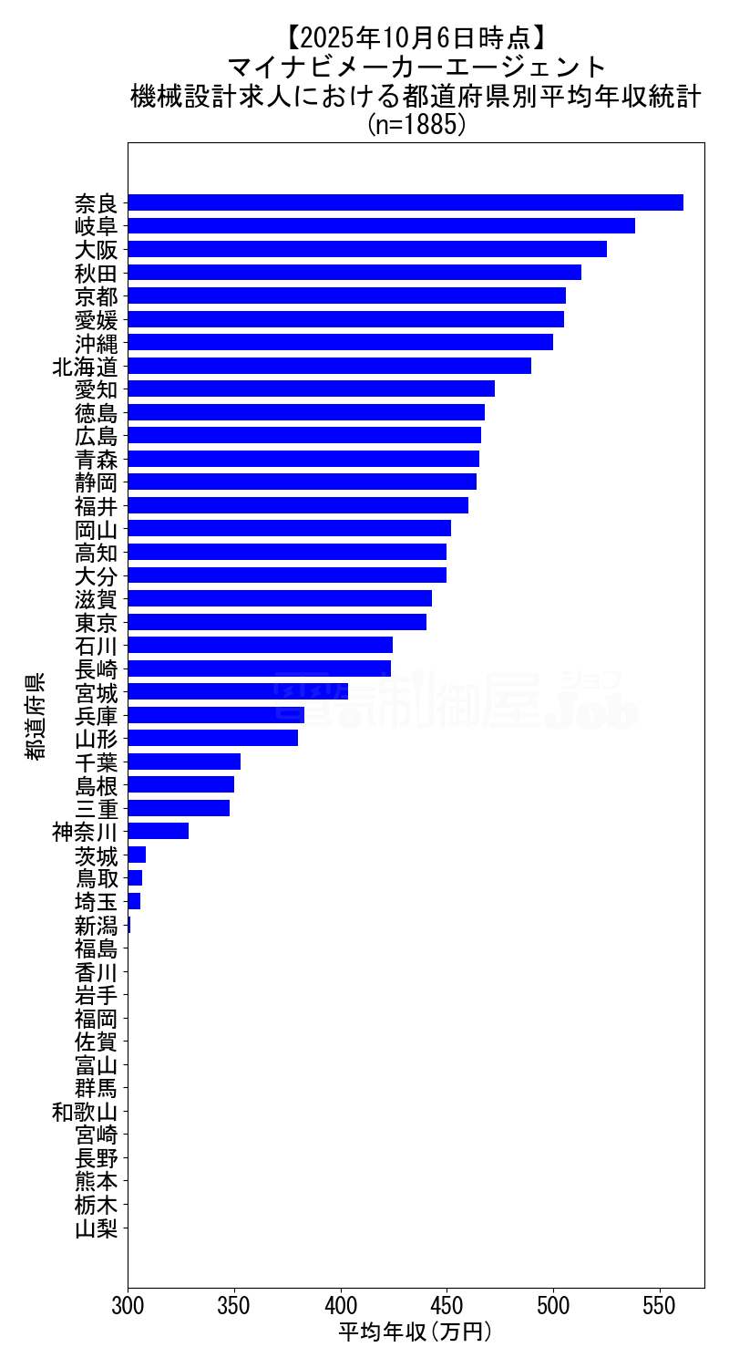 当サイトで定期的に調査しているマイナビメーカーエージェントの、2025年10月6日時点における機械設計求人集計データです。