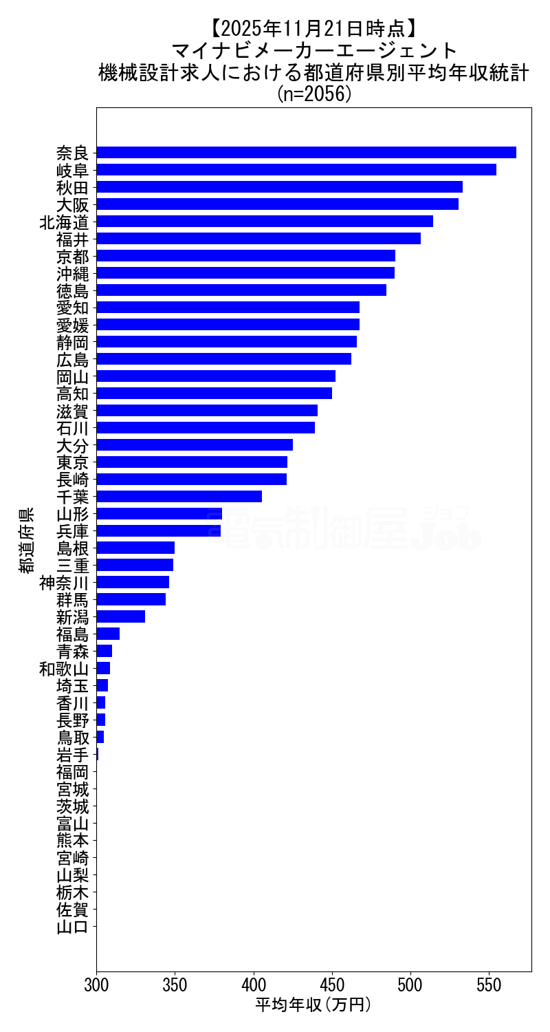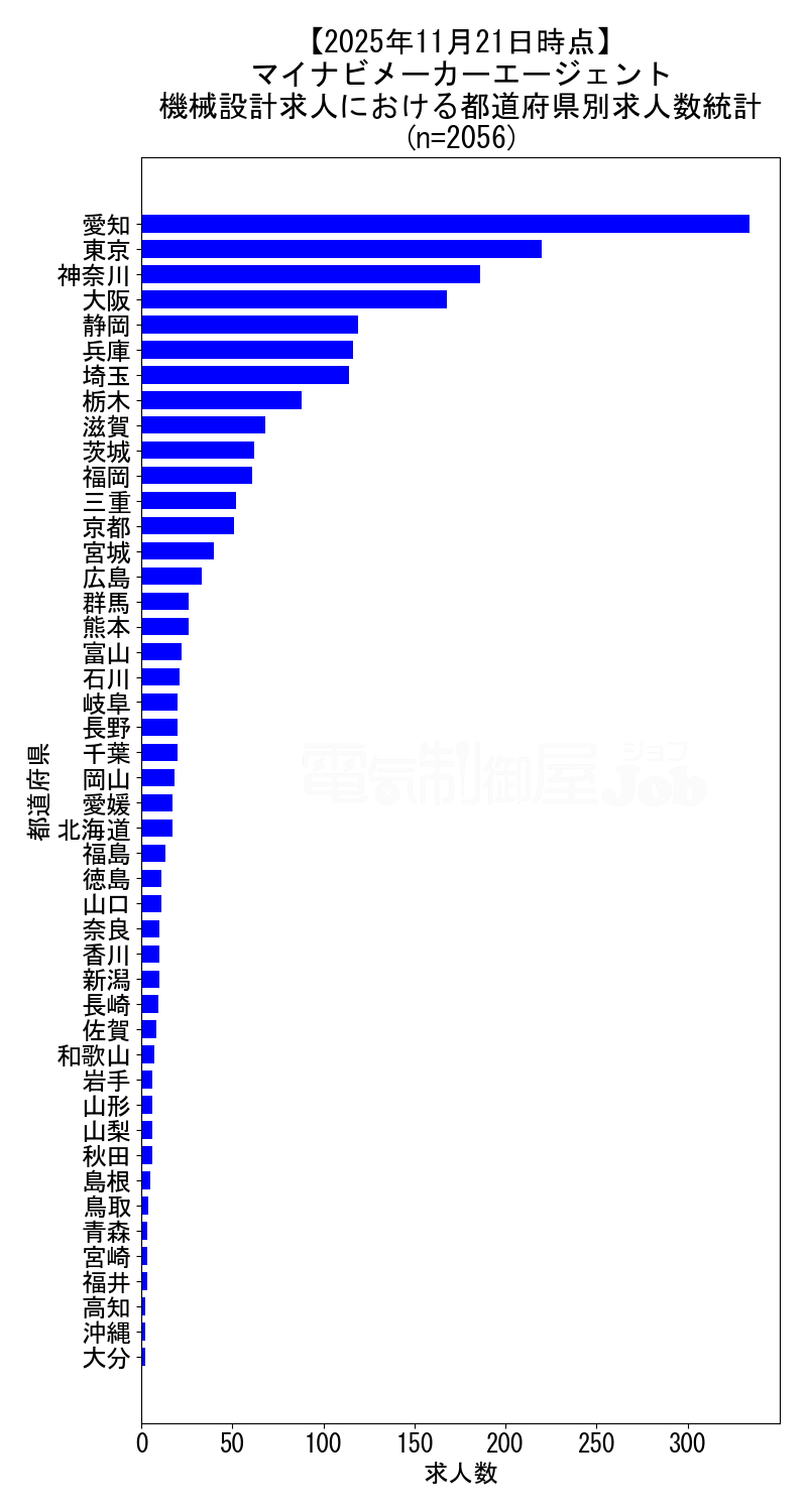 当サイトで定期的に調査しているマイナビメーカーエージェントの、2025年11月21日時点における機械設計求人集計データです。