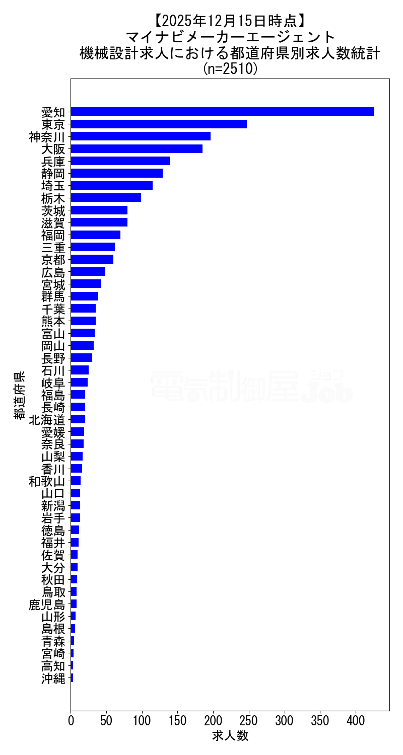 当サイトで定期的に調査しているマイナビメーカーエージェントの、2025年12月15日時点における機械設計求人集計データです。