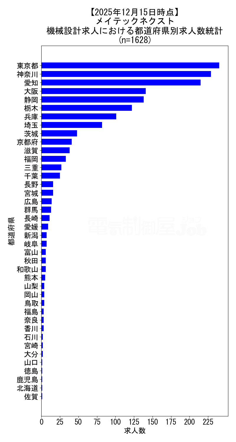 当サイトで定期的に調査しているメイテックネクストの、2025年12月15日時点における機械設計求人集計データです。