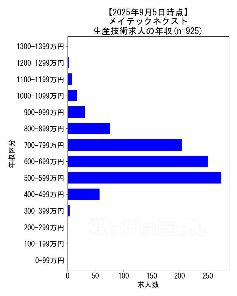 2025年9月5日時点 メイテックネクストの生産技術求人における集計データ