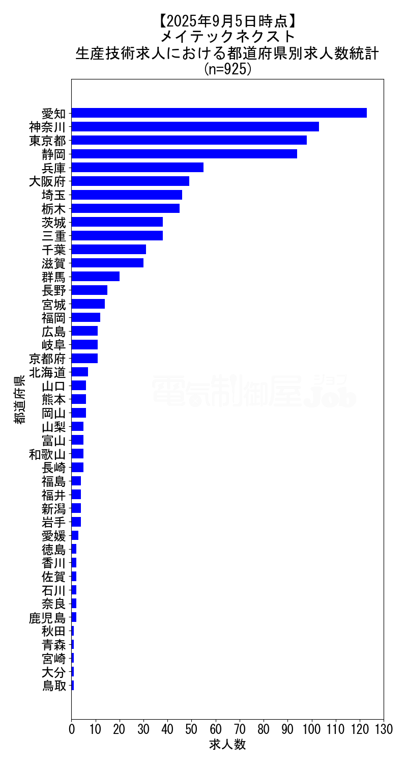 当サイトで定期的に調査しているメイテックネクストの、2025年9月5日時点における生産技術求人集計データです。
