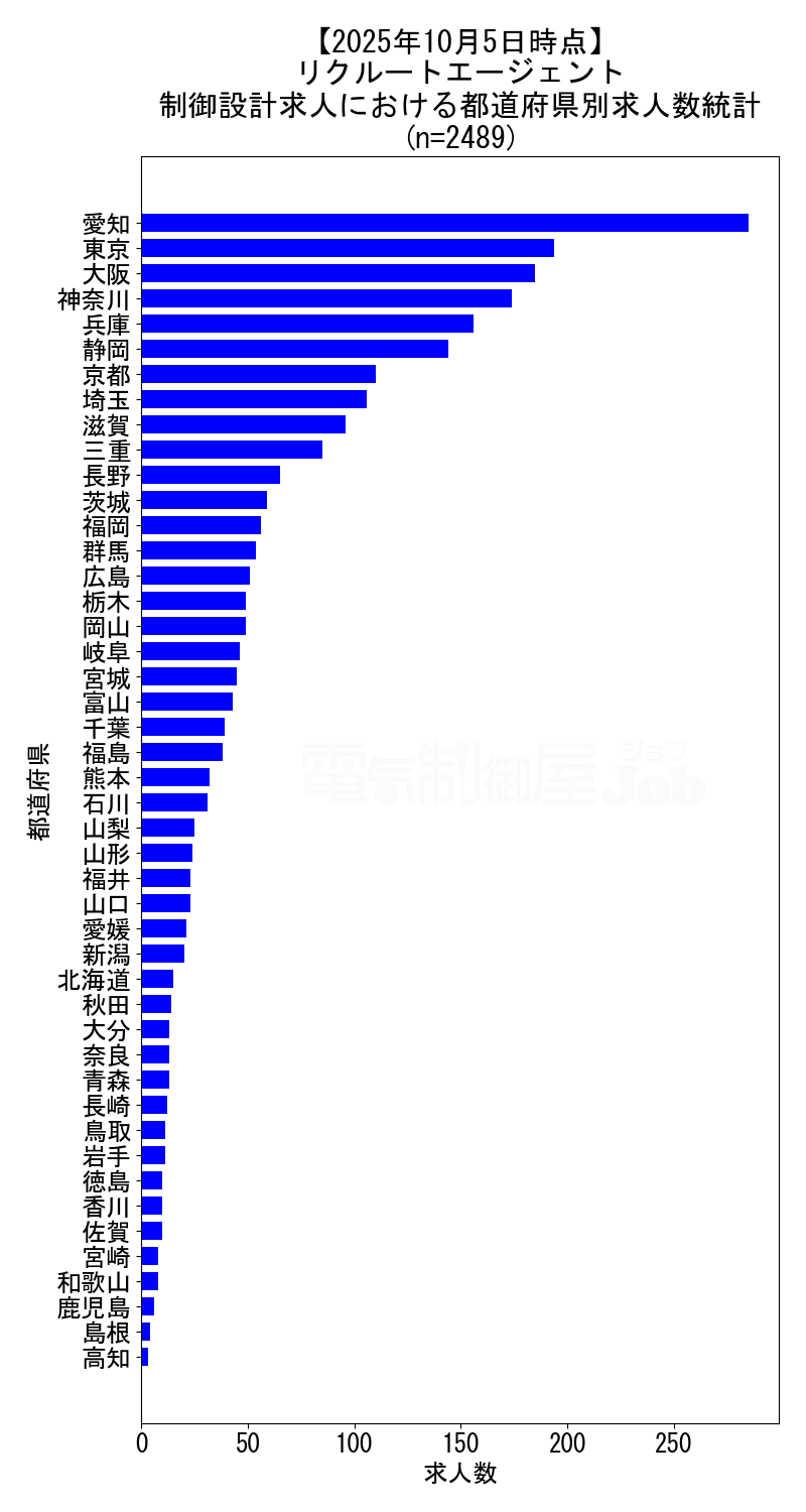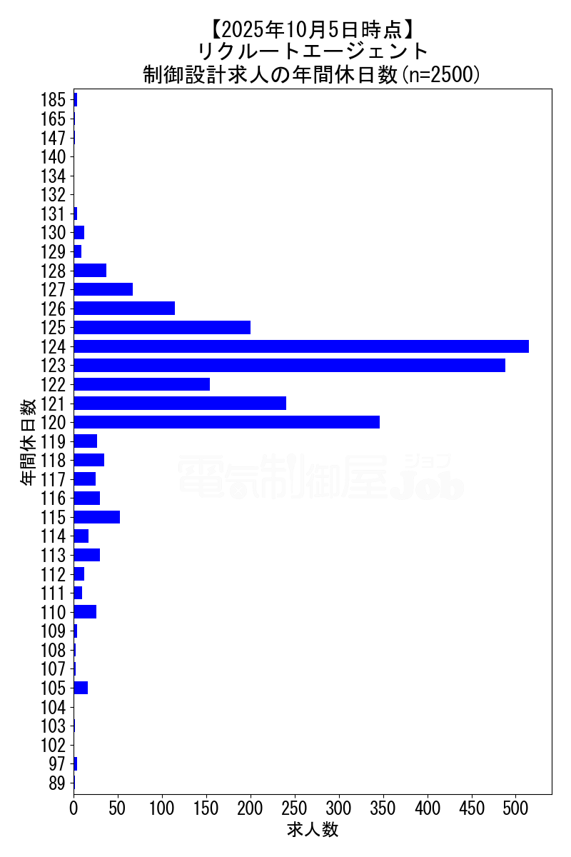 当サイトで定期的に調査しているリクルートエージェントの、2025年10月5日時点における制御設計求人集計データです。