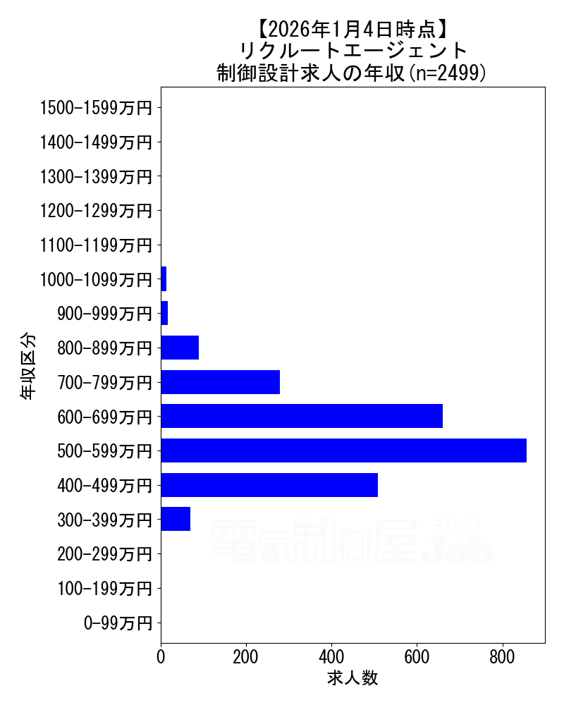 2026年1月4日時点 リクルートエージェントの制御設計求人集計データ