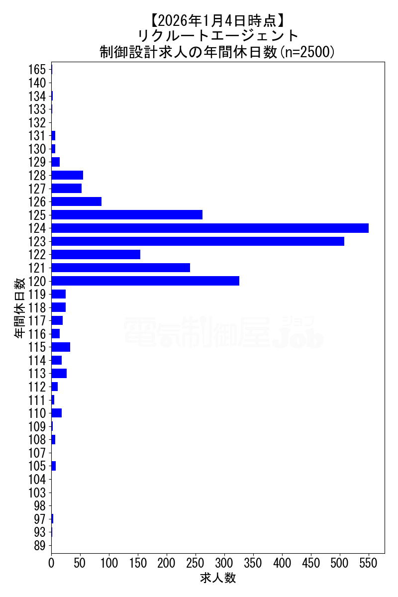 当サイトで定期的に調査しているリクルートエージェントの、2026年1月4日時点における制御設計求人集計データです。