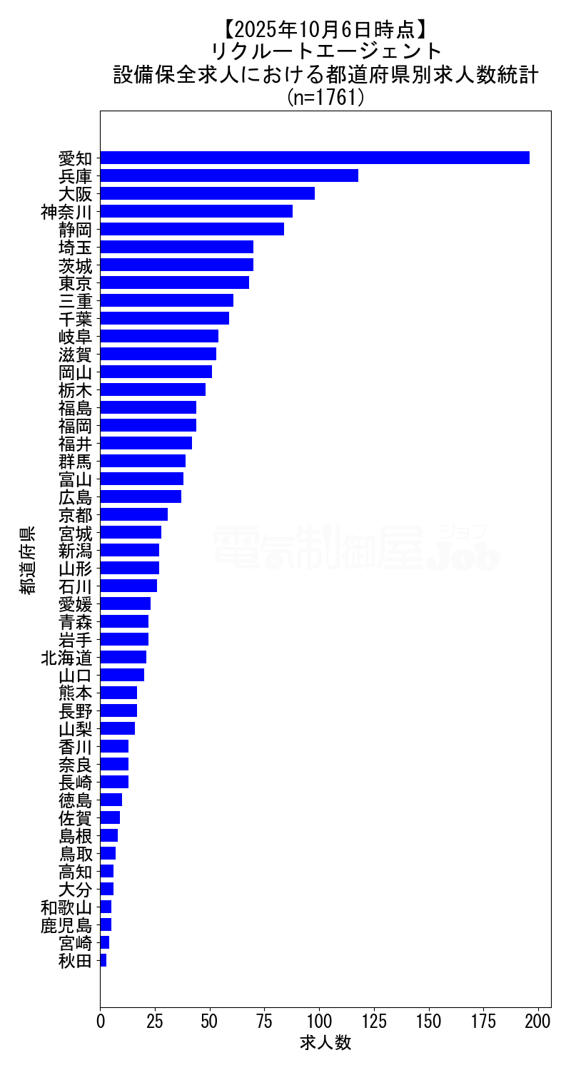 2025年10月6日時点 リクルートエージェントの設備保全求人集計データ