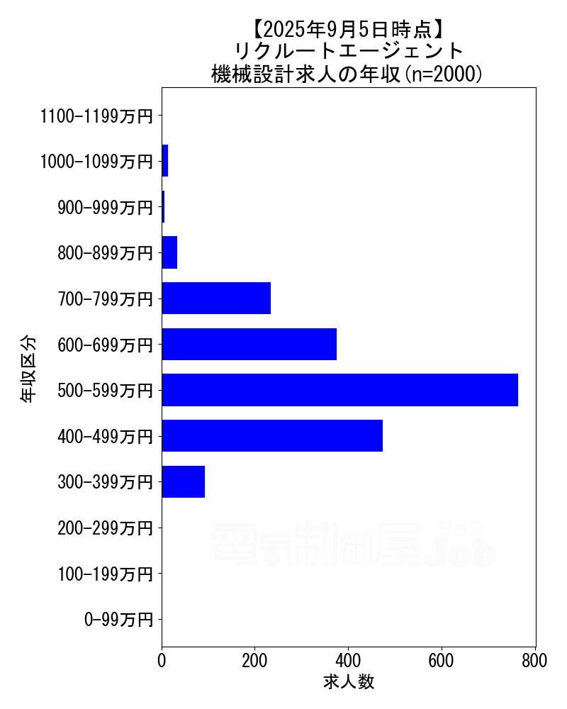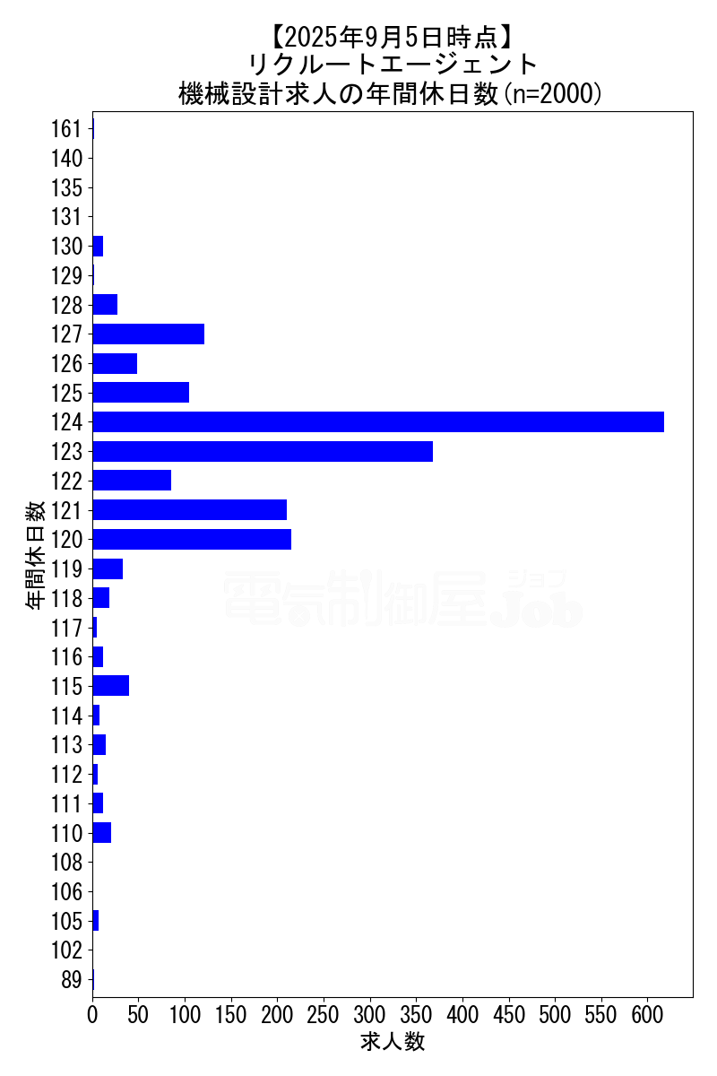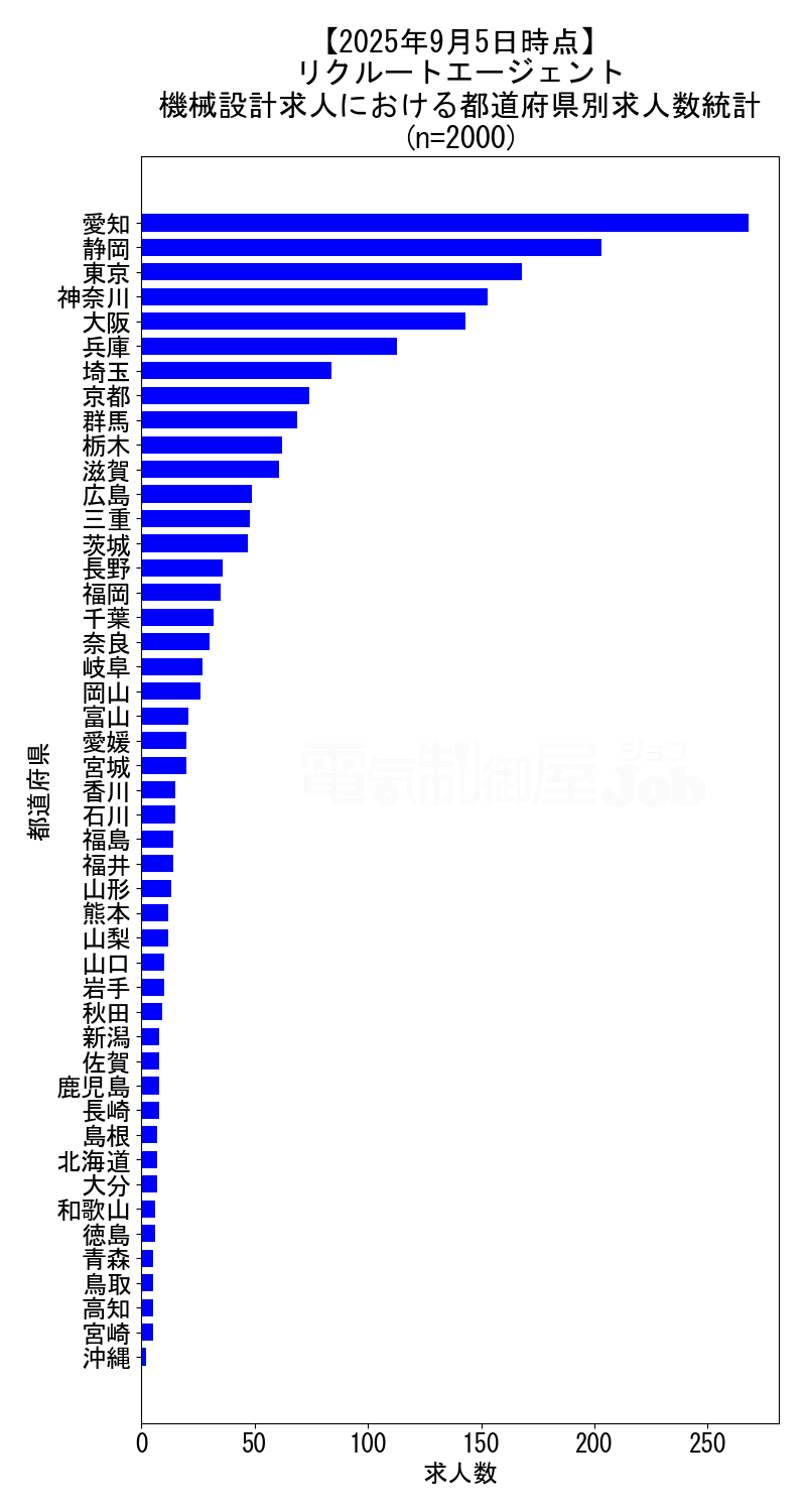 2025年9月5日時点 リクルートエージェントの機械設計求人集計データ