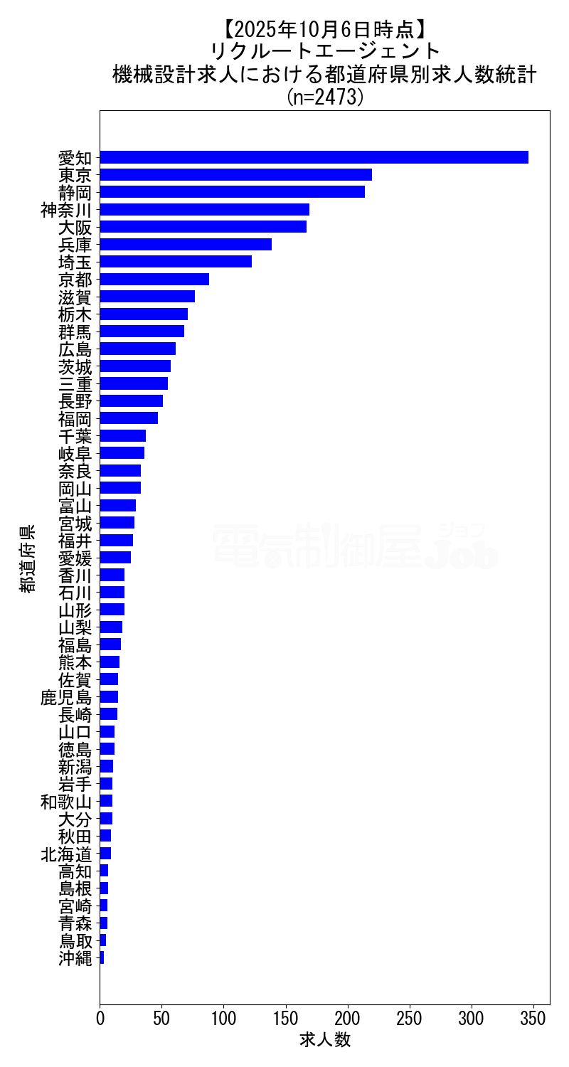 2025年10月6日時点 リクルートエージェントの機械設計求人集計データ