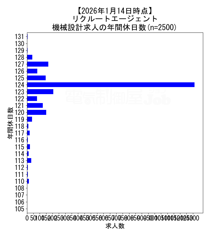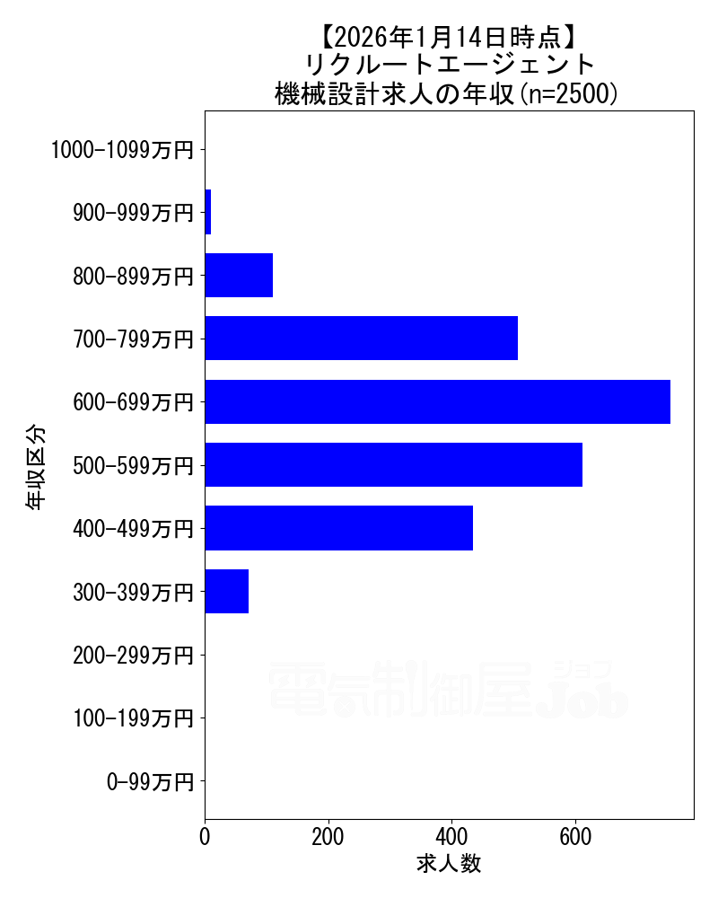 2026年1月14日時点 リクルートエージェントの機械設計求人集計データ