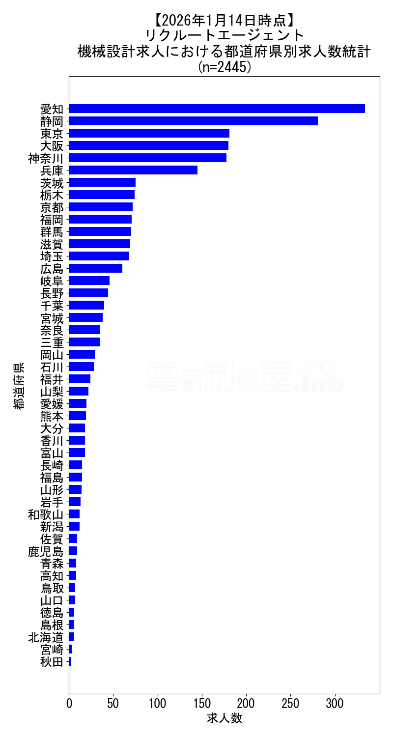 当サイトで定期的に調査しているリクルートエージェントの、2026年1月14日時点における機械設計求人集計データです。