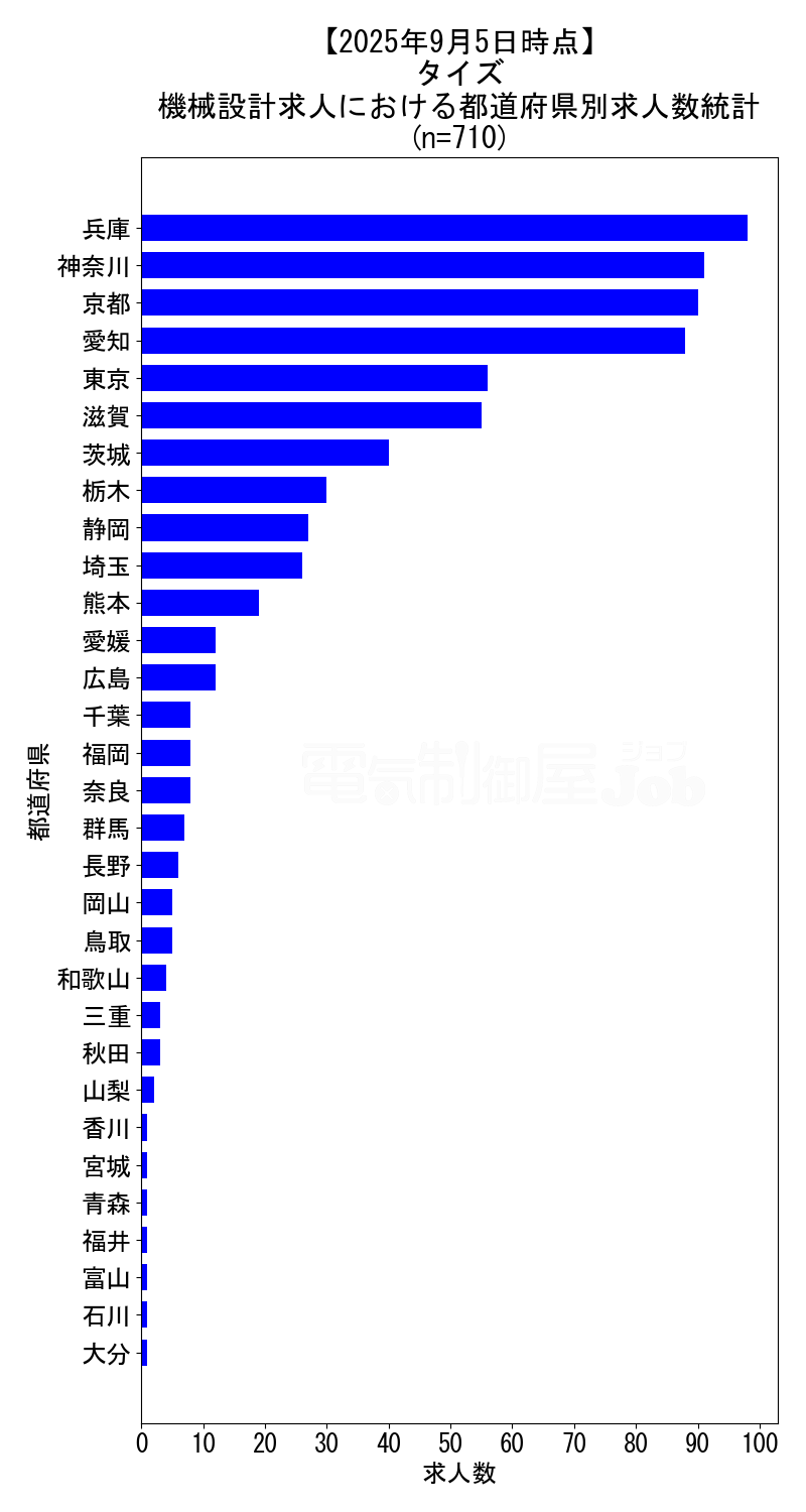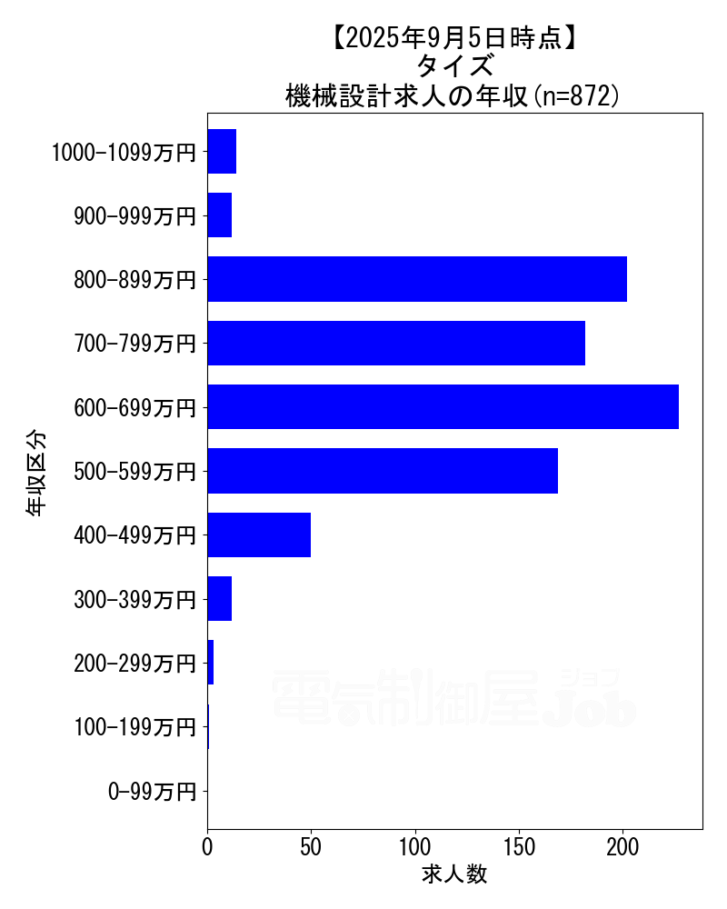 2025年9月5日時点 タイズの機械設計求人集計データ