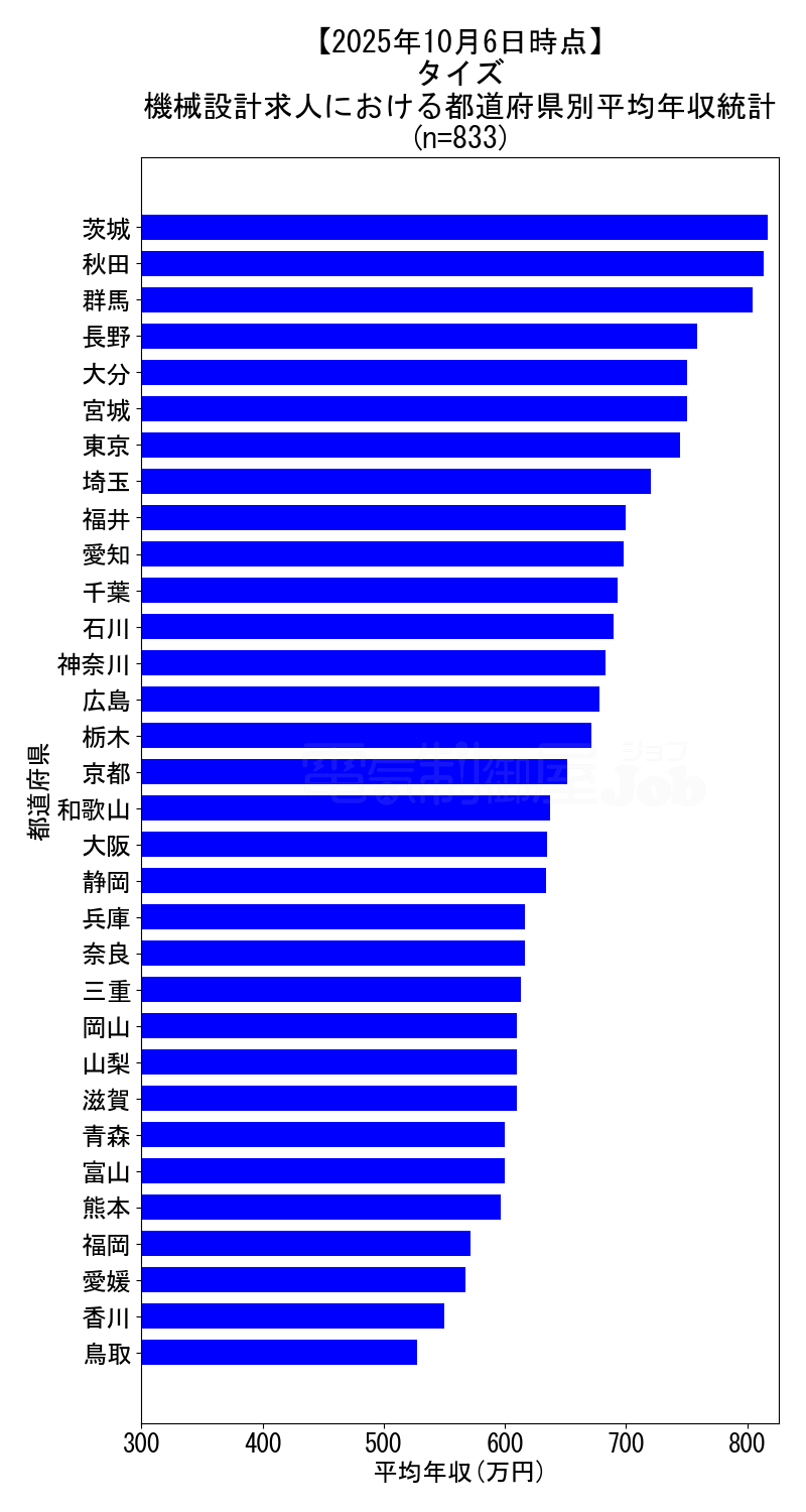 - 都道府県別求人の年収データ⇒833件
