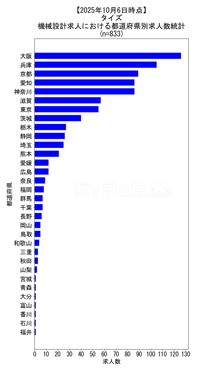 当サイトで定期的に調査しているタイズの、2025年10月6日時点における機械設計求人集計データです。