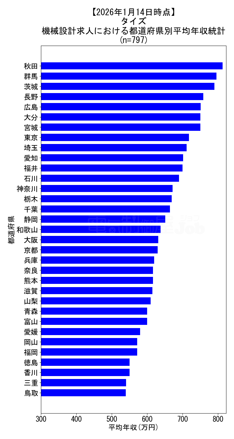 - 都道府県別求人の年収データ⇒797件