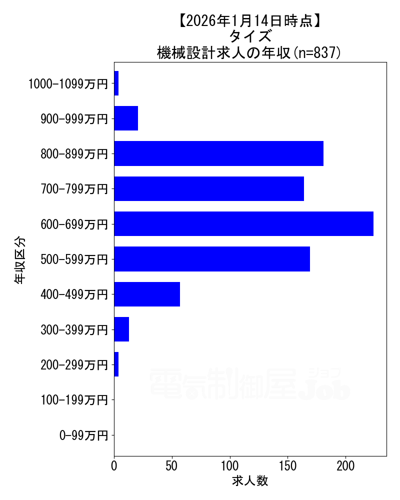 2026年1月14日時点 タイズの機械設計求人集計データ