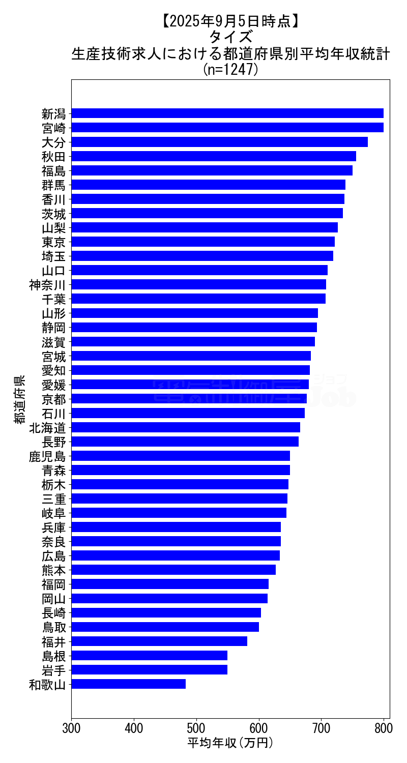 2025年9月5日時点 タイズの生産技術求人集計データ